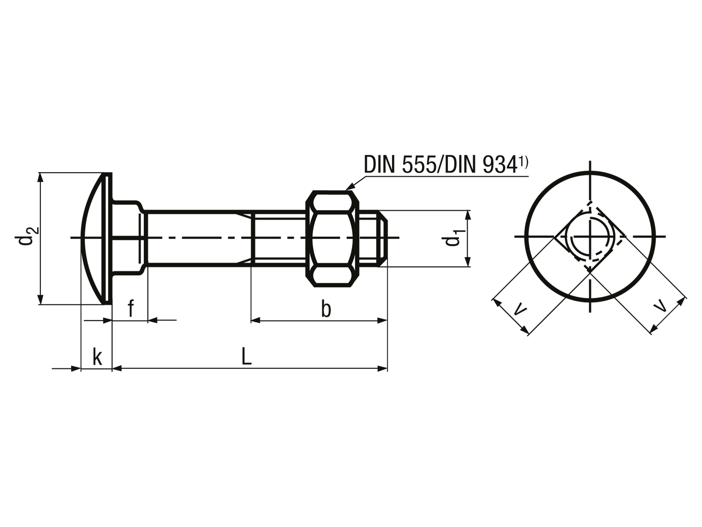 BN 20147Bræddebolte med firkantansats og sekskantmøtrik