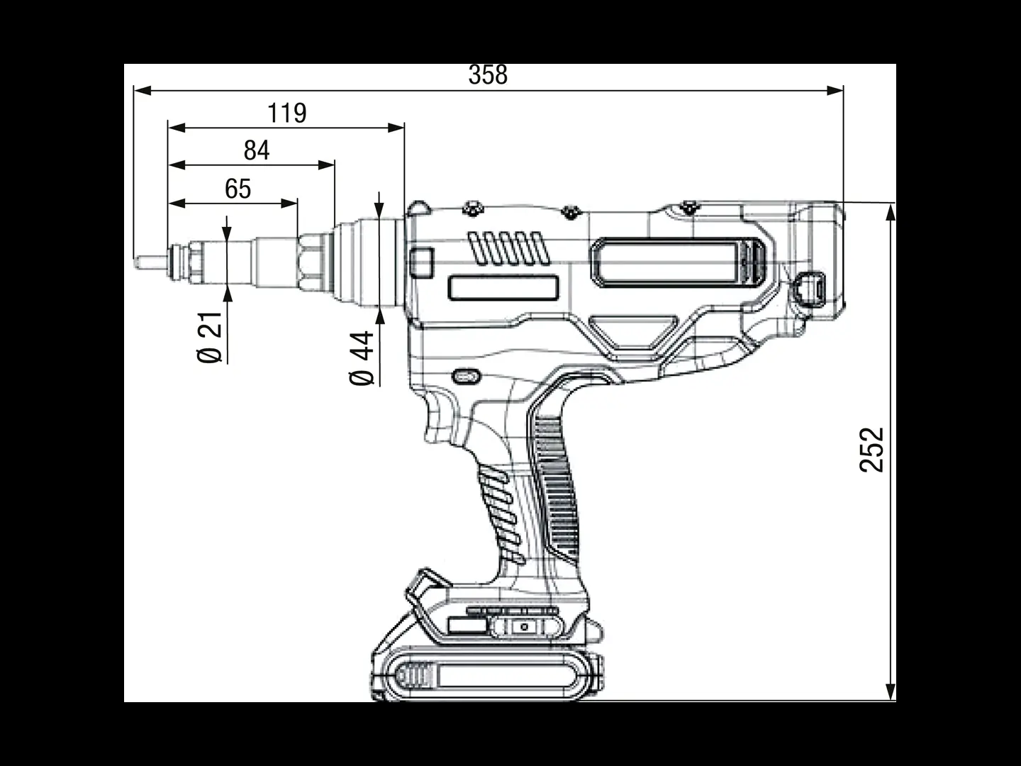 1 Batteridrevet værktøj til blindnittemøtrikker med M6-næseudstyr