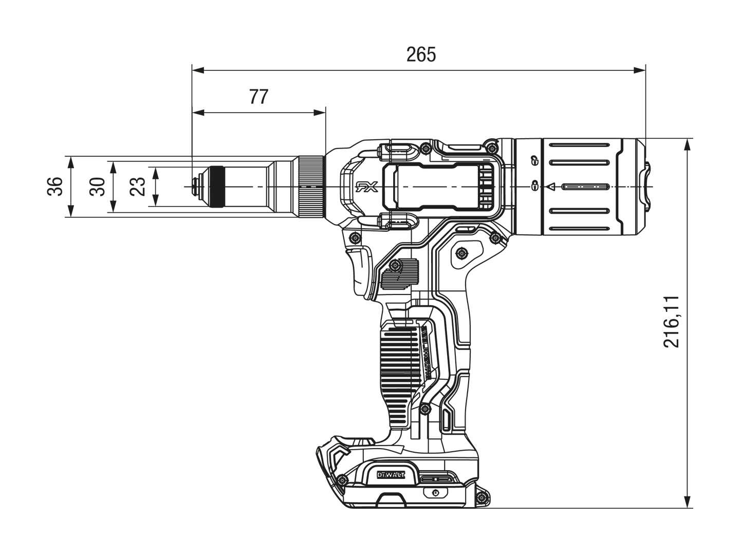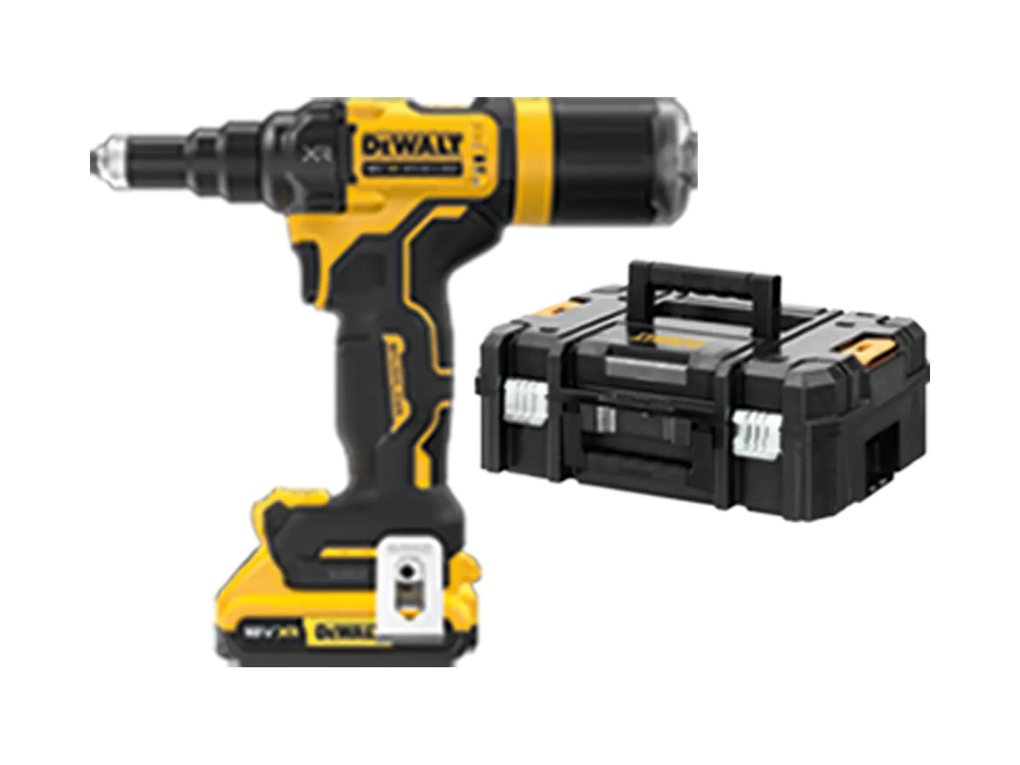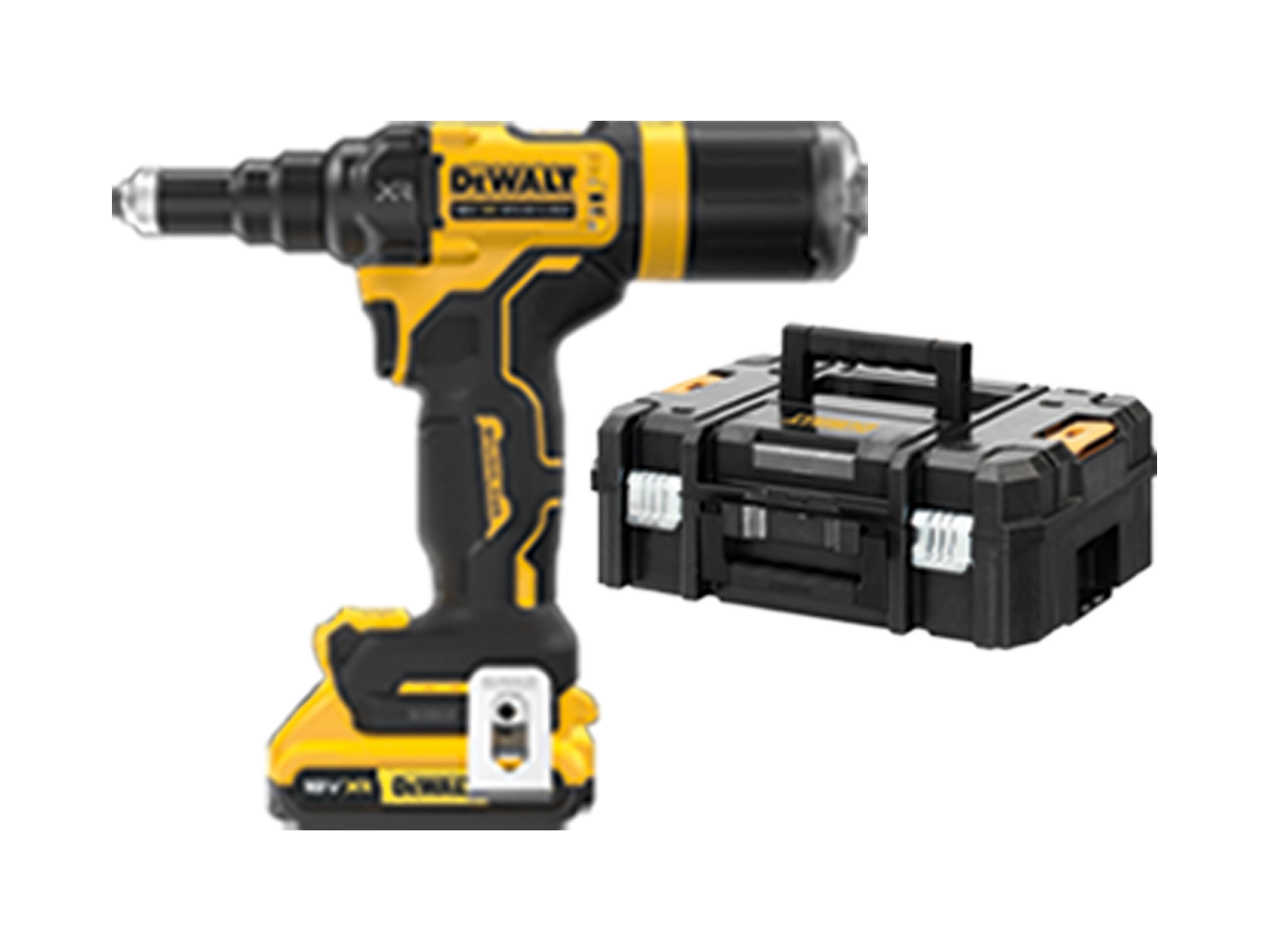 - Let at bruge med hurtig installation af slide-batteri, LED-lys for klart udsyn til applikationen, ergonomisk softgrip-håndtag. En integreret opsamler til nittedorne sikrer, at løse dorne opbevares, mens værktøjet er i brug.