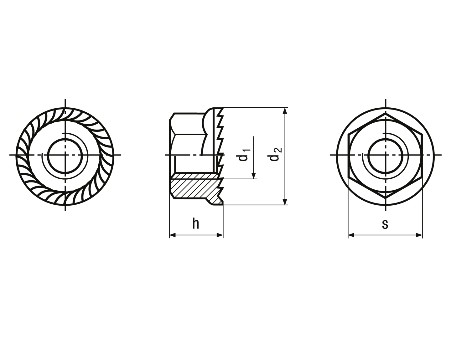 Sekskantede flangemøtrikker med spærretænder