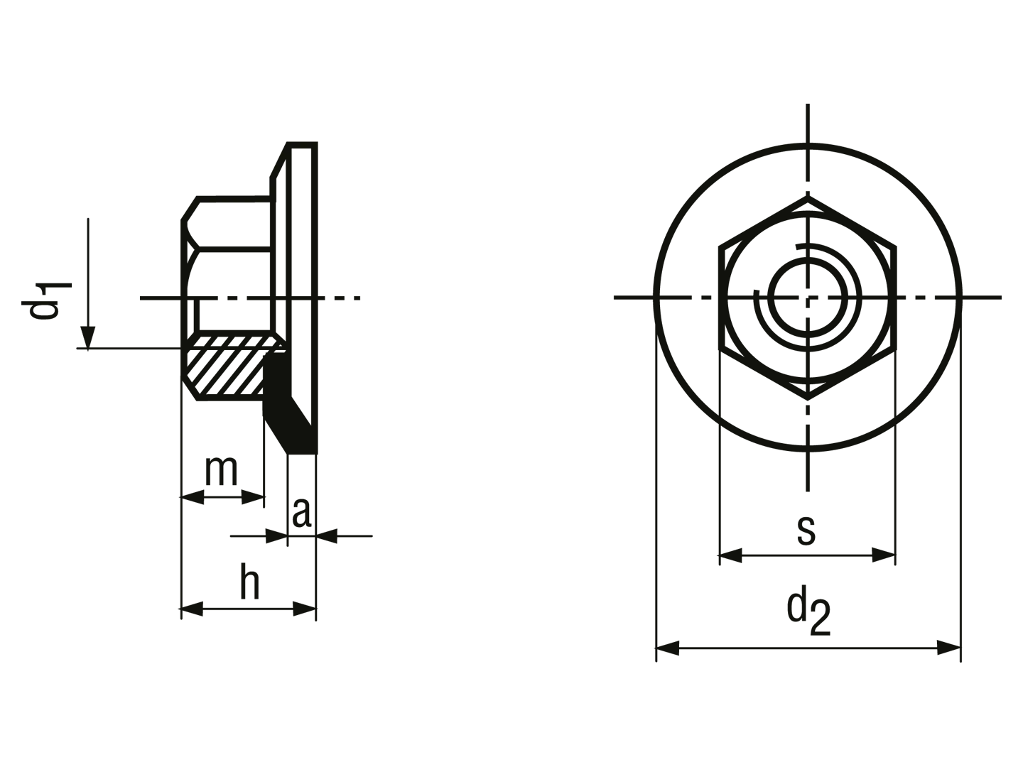 Sekskantede kombimøtrikker med påmonteret konisk fjederskiver