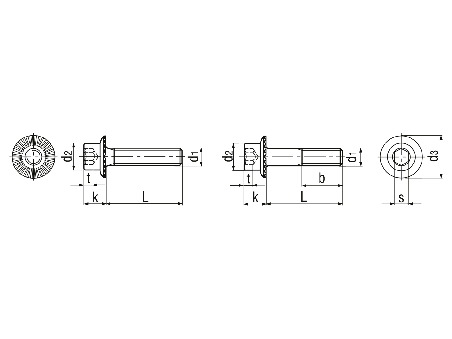 INBUS RIPP® - Cylinderhoved skruer med flange og ribber med indvendig sekskant, fuldt / delgevind